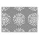 Esta mandala blanca se sienta sobre un fondo gris. Neutral, por lo que parece que podría pertenecer a cualquier lugar. Parte de la colección Mola Mandala.