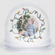 Modern colorful string Christmas lights wreath surrounds your baby's photo on the front and you can personalise with name and year of their first Christmas on reverse.