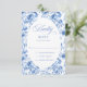 Stylish Dusty Blue Toile Roses Wedding RSVP Card