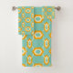 Stylized geometric pattern with bold orange hexagons and white details against a teal background, forming a repeating, symmetrical design.