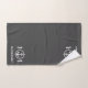 Una bonita toalla de baño personalizada con el nombre de su familia o del barco. Con un ancla náutica diseñado por un personalizado y emblema de caballito de mar en blanco sobre gris marino o cambiar fácilmente el color de fondo para que coincida con tu decoración actual. La perfecta incorporación a su casa, casa de playa o casa de vacaciones.