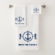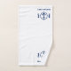Una bonita toalla de baño personalizada con el nombre de su familia o del barco. Con un ancla náutica diseñado por un personalizado y emblema de caballito de mar en azul marino sobre blanco o cambiar fácilmente el color de fondo para que coincida con tu decoración actual. La perfecta incorporación a su casa, casa de playa o casa de vacaciones.