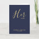La Minimalista tarjeta Vows de su Boda Vows incluye el título 'Her Vows' en estilo de letra de escritura moderna de oro con detalles bodas en estilo de letra sans serif en fondo azul marino. Nota: Los detalles del Relieve metalizado se simulan en la obra de arte. Este producto no contará con ningún relieve ni capa que creen un efecto metalizado.
