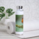 Su botella térmica con una foto de un ladrón encaramado en una rama