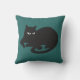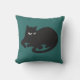 El gráfico dramático de un gato negro con la perforación blanca observa en silueta en una almohada verde.