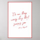 Con la libertad de personalizar de este impreso con una cita que está cerca de tu corazón, ¡este artículo se convierte en un reflejo de ti! El elegante guión rojo intenso, con un fondo de blanco, aporta un toque de refinamiento, lo que lo convierte en una adición muy apreciada a cualquier habitación.