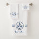 Su nombre personalizado o nombre de barco con ancla náutica y ositos cruzados en un juego de toallas de baño Personalizado.