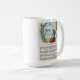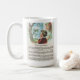 El himno "que su ojo está en el gorrión" se imprime a ambos lados de esta taza.