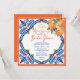 Encontró su plantilla de invitación al naranja azul de Main Squeeze, descarga instantánea, azul Majjolica, azulejos mediterráneos españoles de naranjas con escritura informal moderna, agradable para las funciones de verano al aire libre.
