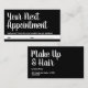 un guión con letras a mano en negrita decora maravillosamente este siguiente recordatorio de cita para sus clientes! una excelente manera de organizar y recordar a sus clientes su próxima cita con gran encanto minimalista! sólo tiene que añadir su información en la plantilla de arriba y luego añadir al carrito! si necesita más personalización, como cambiar los colores del tipo de letra, pulse sobre el botón personalizar azul, haga sus cambios, pulse sobre hecho y luego añada al carrito. ¡asegúrese de añadir también su código de promoción! gracias por compra! **Avísame cuanto te gustó y escribe una revisión al cliente! ¡Me encantaría saber lo genial que funciona para ti! **