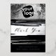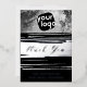 Esta moderna tarjeta de descuento de agradecimiento en colores negro, blanco y plateado con una tipografía de escritura elegante es totalmente personalizable y le introducirá su negocio con estilo y el sutil toque de lujo de una auténtica impresión de Relieve metalizado.