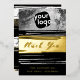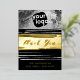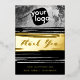 Esta moderna tarjeta de descuento de agradecimiento en colores negro, blanco y dorado con una tipografía de escritura elegante es totalmente personalizable y le introducirá su negocio con estilo y el sutil toque de lujo de una auténtica impresión de Relieve metalizado.