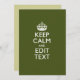 Sus personalizados guardan el refrán tranquilo en una decoración de encargo fina del estilo del color de acento del verde verde oliva. Personalizado guarda estilo tranquilo el decir en el que está de un regalo bueno. Chistoso o caprichoso intente encendido sus palabras creativas en dos líneas de texto editable. Recuerde utilizar las mayúsculas para los mejores resultados.