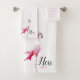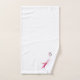 Un sistema de encargo de su y el suyo las toallas que ofrecen una acuarela de la diversión diseñan el flamenco en la mano y la toalla de baño y un modelo del flamenco en el trapo del lavado.