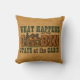 Gran regalo para los hombres y las mujeres del aire libre que ofrecen una cabina en las maderas con un rifle y trole afuera. Los habitantes de la cabina en las ventanas están teniendo un fiesta y están mostrando apagado su captura grande de pescados. El texto dice QUÉ SUCEDE EN LAS ESTANCIAS de la CABINA EN LA CABINA. Fondo de madera del final de grano. ¡Original de PinkInkArt!
