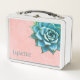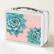 Suculentos a la moda adornan un fondo de encaje rosa. Personalice la lonchera para que se adapte a sus necesidades.