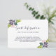 Una tarjeta de información perfecta para las direcciones o los detalles del alojamiento en nuestro suculento y moderno tema floral que es tan popular hoy en día. Incluya con nuestra invitación coincidente para un magnífico aspecto coordinado. Un bonito ramo de suculentas plantas en hermosos tonos verde suave y oliva, ciruela de lavanda y rosa rubor se inspiran en los magníficos colores de estas pequeñas plantas. El suave color violeta del texto parece impresionante en el fondo blanco y nítido y el borde de la invitación añade interés y detalles al diseño. En la parte posterior, una pequeña flor suculenta y vegetación. Vea todos nuestros otros productos de coordinación en la línea "Suculent Bouquet II" para crear un hermoso conjunto boda a juego.
