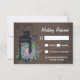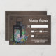 Las suculentas tarjetas RSVP Wedding de la Boda Rustica de Madera - presentan un antiguo fondo de madera de granero con una linterna negra llena de suculentos acuarelas y flores silvestres. Vea productos de diseño coincidentes encontrados en la colección de esta página.