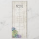 Las fuentes únicas, los coloridos suculentos acuarelas y los rústicos fondos de madera de madera son los puntos fuertes de estos productos bodas de mezcla y coincidencia. Este bonito menú de recepción tiene una plantilla para editar las opciones del menú, junto con las iniciales de la novia y del novio y la fecha del boda. Busque ID515 para ver todos los productos coincidentes de este conjunto.