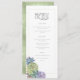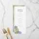 Las fuentes únicas, los suculentos coloridos coloridos coloridos y los fondos purpurinoso en un verde suave primavera son los puntos fuertes de estos productos bodas de mezcla y coincidencia. Este bonito menú de recepción tiene una plantilla para editar las opciones del menú, junto con las iniciales de la novia y del novio y la fecha del boda. Un patrón brillante y texturado, en tonos claros y oscuros de verde primavera, añade un fondo opuesto al inverso. Busque ID515 para ver todos los productos coincidentes de este conjunto.