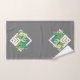¡Busca un cactus de moda bohemio en tu cuarto de baño de bonito! Las toallas de baño están equipadas con bonito, cactus y suculentos a la moda en un diseño geométrico blanco. El fondo es un gris medio neutro en bonito.
