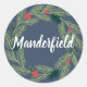 Navidades pegatinas de vacaciones con nuestras ramas y bayas diseño en un fondo azul oscuro. Puede personalizar fácilmente estas pegatinas con su apellido antes de pedir con un elegante texto cursivo blanco.