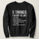 Sudadera 5 Things I Wan't In Life Tow Truck Operator