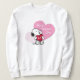 El día de San Valentín de cacahuetes | Echa un vistazo a Snoopy sosteniéndose sobre un corazón rojo, con los corazones rosados en el fondo que decían: "abrazos y besos".