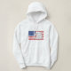 El águila majestuoso se alza orgullosamente al lado de la bandera nacional estadounidense.
