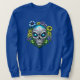 Calavera extraterrestre de azúcar alienígena en parche de flores con ojos azules, ser celestial extra terrestre. Buen regalo para los amantes de la OVNIlogy.
