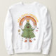 Celebra la temporada con este diseño original y reconfortante. Con un alegre personaje de árbol de Navidad, con luces festivas y botas acogedoras, parados bajo un vibrante arcoiris con el mensaje "Amor, paz, Navidades". Esta imagen divertida y colorida exuda vibraciones retro y es perfecta para difundir energía positiva y alegría navideña con un toque de nostalgia.