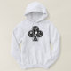 Un llamativo emblema del As of Clubs hecho para jugadores que respetan el borde y el ritual. En el centro, el cameo de una mujer encapuchada —tu suplente de Lady Luck— está rodeado de íconos clásicos que funcionan bien: trébol de cuatro hojas, herradura, ladybug, dados, estrella, llave y cerradura, brotes de laurel. La línea limpia y de alto contraste se lee instantáneamente desde el otro lado del fieltro, mientras que la fibra ornamental recompensa una segunda mirada. Ideal para aficionados a los juegos de dinero y amantes del póquer que quieren que su equipo indique confianza, enfoque y un toque de superstición.