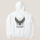 Un poderoso emblema monocromático con un águila estilizada a mitad de vuelo con alas completamente extendidas, simbolizando fuerza, libertad y elevación. La línea intrincada irradia desde la forma del ave, añadiendo energía y movimiento. A continuación, la audaz palabra sérica "ASCEND" refuerza el tema de la superación y el crecimiento personal.