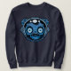 Ilustracion vectorial personalizado de un astronauta zombie con ojos grandes usando un casco espacial con un escudo de vidrio roto en tonos azules. Etiquetas: astronauta, cosmonauta, casco, zombi, espacio, espacial, monstruo, cadete, cadáver