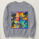 Astronautas en espacios elegantes y retro-futuristas mientras se enfrentan a los gigantescos y feroces extraterrestres en el estilo de arte pop de historietas: criaturas vívidas y grotescas de color azul metálico. Sus lenguas largas goteando con saliva ácida que puede corroer la más fuerte metalizado que se encuentra en cualquier planeta La batalla arde con líneas de movimiento exageradas, efectos sonoros sobredimensionados—ZAP! ¡BAM! y imágenes dramáticas y de alto contraste que dan al escenario una energía dinámica y surrealista.