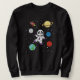 El panda flota en el espacio con planetas y cohetes. Pandas en el espacio ven la Tierra, Marte y la Luna. El Saturno y el Urano también están en la galaxia. Un astronauta gracioso con un oso.