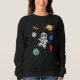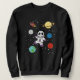El panda flota en el espacio con planetas y cohetes. Pandas en el espacio ven la Tierra, Marte y la Luna. El Saturno y el Urano también están en la galaxia. Un astronauta gracioso con un oso.