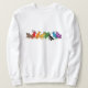 Divertidos y divertidos "pájaros de una pluma se unen" en todos los colores del arcoiris —amarillo, rojo. verde, azul, púrpura y negro. Arte de Margaret Loftin Whiting.