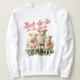 Los navidades de la granja son un momento alegre, y este diseño de estilo vintage de tres lindas ovejas lo captura perfectamente. Las ovejas se esconden juntas sobre la vegetación de las vacaciones, y un par de ellas llevan adorables arcos rojos. El texto "Bah-la-la-la-la-la-la" agrega un toque de capricho y diversión. Este diseño es genial para cualquiera que ame decoraciones navideñas antiguas o Navidades en la granja.