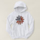 Esta flor hippie patriótica con fondo de bandera estadounidense y centro de símbolos de paz te ayudará a mostrar tu apoyo por el país y la libertad.