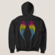 Este capuchón tiene dos impresiones, un conjunto de alas impresas en los colores de la bandera pansexual en la parte posterior y un halo correspondiente en el pecho izquierdo delantero. Usa esta capucha en tu próximo festival del orgullo para mostrarte con los colores de la bandera pansexual. Te hace un gran regalo.