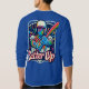 El diseño de la camiseta "Batter Up" presenta una dinámica escena de béisbol con un ilustracion audaz y lleno de acción de un jugador que balancea un murciélago. El jugador es capturado a mitad del balancín, con líneas de energía enfatizando el movimiento. En el fondo, un diamante de béisbol se desvanece sutilmente, con las palabras "Batter Up" estampadas en negrita y esporádicas. El diseño es vibrante, con una mezcla de colores de equipo (como el azul profundo y el blanco brillante) que crean un poderoso contraste. La camisa transmite la emoción del juego, perfecto para cualquier fanático del béisbol.