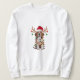 Este adorable diseño cuenta con un perro de color beagle vestido con un sombrero festivo de Papá Noel y con cánticos de renos adornados con adornos de Navidad rojos y verdes. El beagle está envuelto en coloridas luces de Navidad, lo que le da un ambiente alegre y alegre para las vacaciones. La imagen combina el gusto y el humor, perfecto para las celebraciones de los Navidades.
