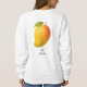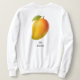 Big mango on front and back of your sweatshirt. Along with your name, text, or slogan in black below it. Sweet juicy fruit.