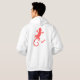 On the back of your hoodie is a large red gecko. Along with it, your name is displayed at a 30-degree angle. On the front left, there's a smaller gecko and your name.