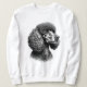 Black Poodle Dog Art Women's Sweatshirt. Cozy and chic! This white pullover features a stunning black Poodle portrait with high-contrast detail. An ideal gift for Poodle moms and all dog lovers. Perfect casual wear with an elegant pet art design. High-quality, comfortable ladies apparel. Shop this unique dog breed sweater!