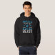 ¡Gotero de hockey con texto en azul y blanco, casco con máscara, patines y palos de hockey dice Drop Like a Butterfly Block Like a Beast!