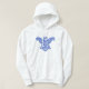 add a meaningful layer to your wardrobe with this blue filigree angel mens hoodie. the bold blue lace silhouette and intricate scrollwork create a striking focal point on this comfortable pullover. this ornate guardian icon design is ideal for those who appreciate spiritual artwork and sophisticated graphic style during the winter months.