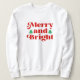 Un grupo gráfico de Navidades festivos para mujeres con tipografía de estilo boho con el dicho "Merry and Bright" . Se puede modificar el estilo de texto blanco y de sudaderas blancas.