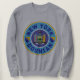 Diseño de círculos azules y amarillos con la bandera de los escudos del estado de Nueva York y Bosnia Herzegovina y el texto de Nueva York Bosnio